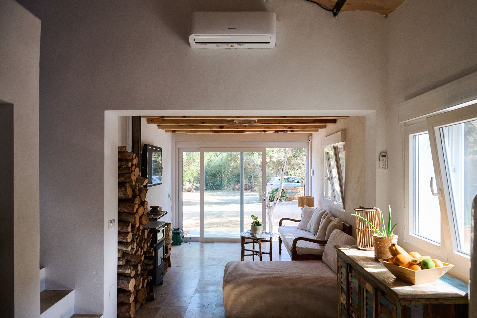 Inside, comfort and sustainability go hand in hand. The home is equipped with underfloor heating with independent temperature control in each area, two fully equipped kitchens, and a mixed electrical system incorporating solar panels. Additional eco-conscious features include rainwater collection, reinforcing the property’s commitment to efficient and responsible living. The master suite is completed by a private jacuzzi, providing a true retreat.