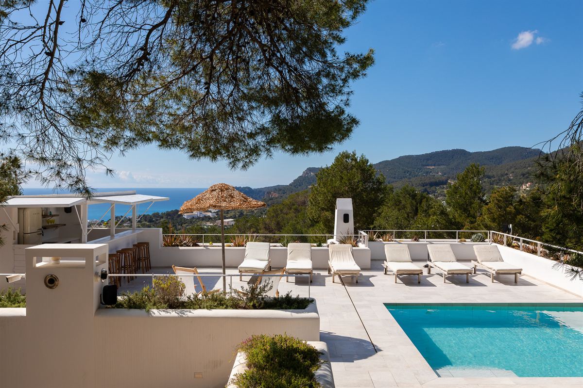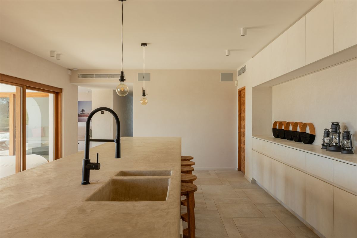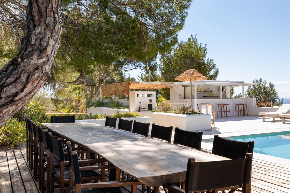 Outdoors, the property reveals its most inspiring features: a rooftop pool with a sea-view chiringuito for golden sunsets, an open-air kitchen with shaded lounges for long evenings under the stars, and a hidden yoga platform with views across Formentera for private wellness retreats. With its permanent tourist rental license, Monte del Sol represents both a secure investment and a welcoming family home — a place to live slowly, connect deeply, and experience the essence of Ibiza.