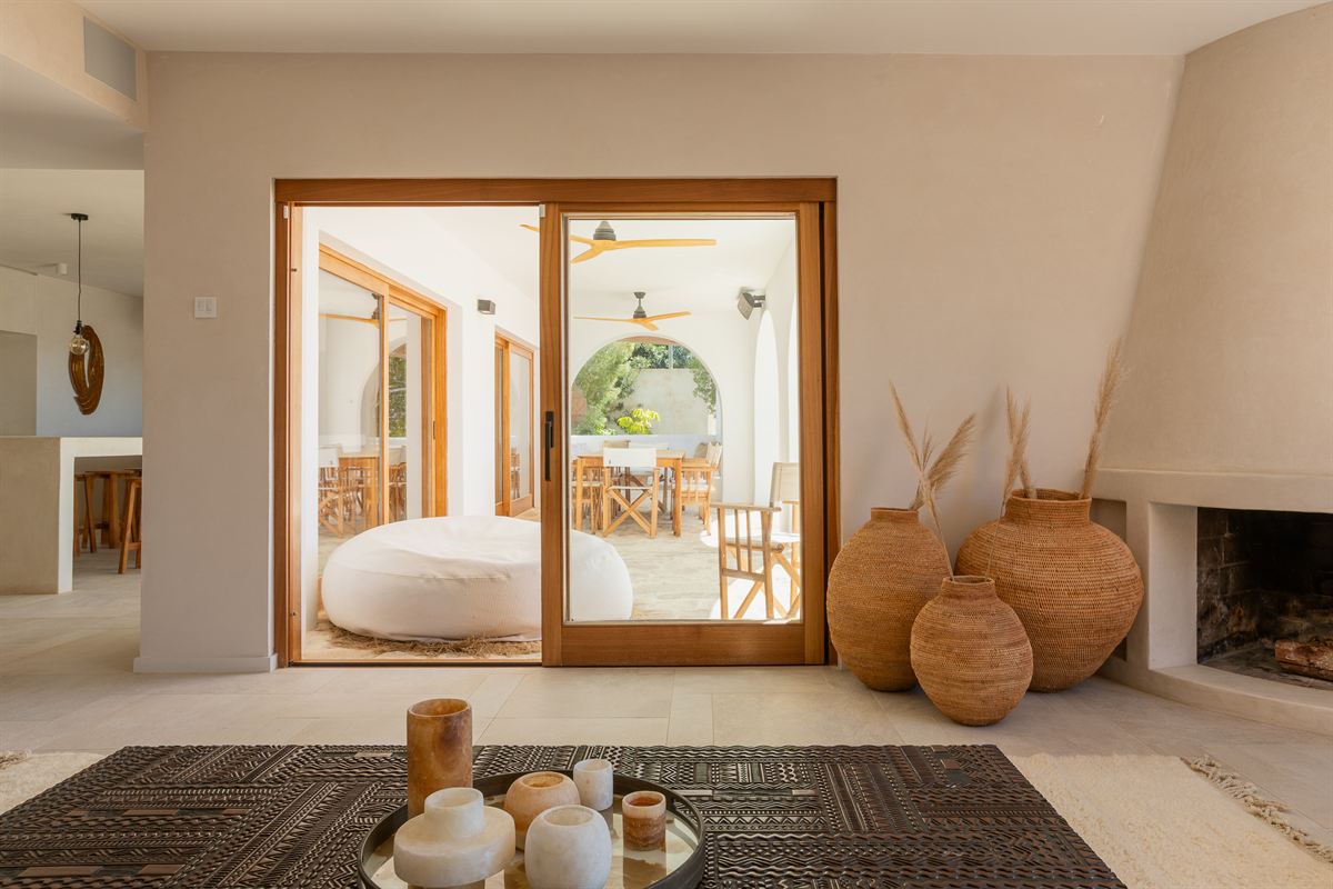 Tucked away in the peaceful enclave of Es Cubells, Monte del Sol is a beautifully restored villa that blends timeless Ibiza design with modern comfort. Situated within the island’s golden triangle, the property sits on a gently terraced and fully enclosed plot, offering rare privacy and calm while being just minutes away from the island’s finest beaches, beach clubs, and restaurants.