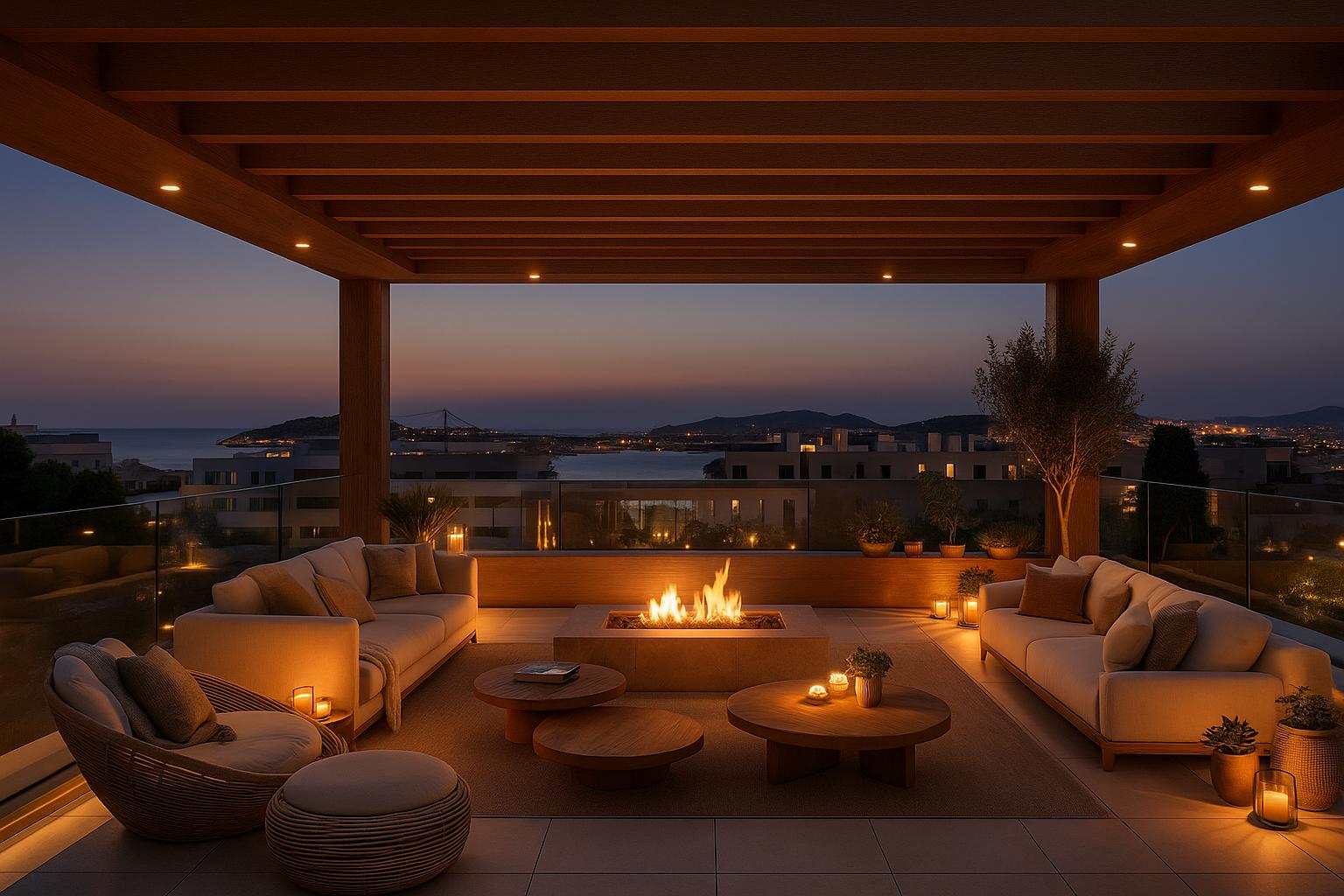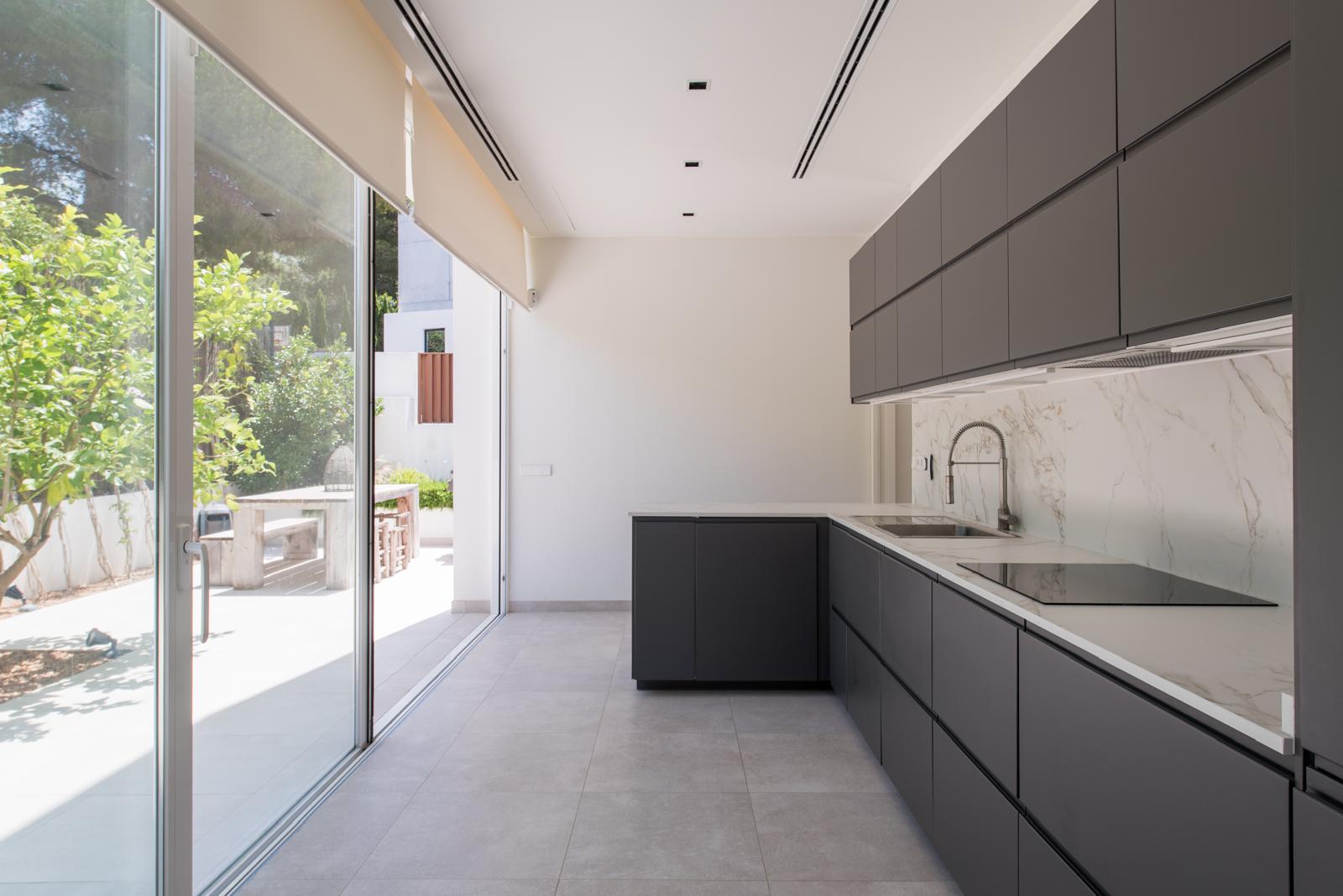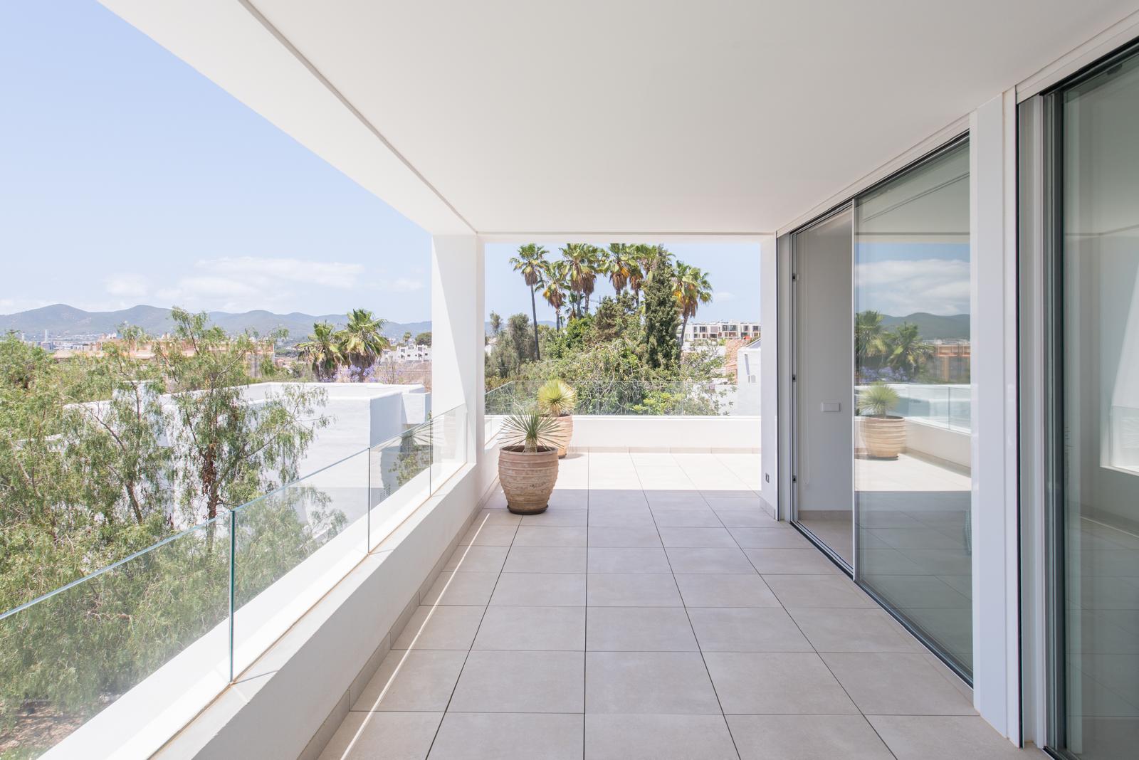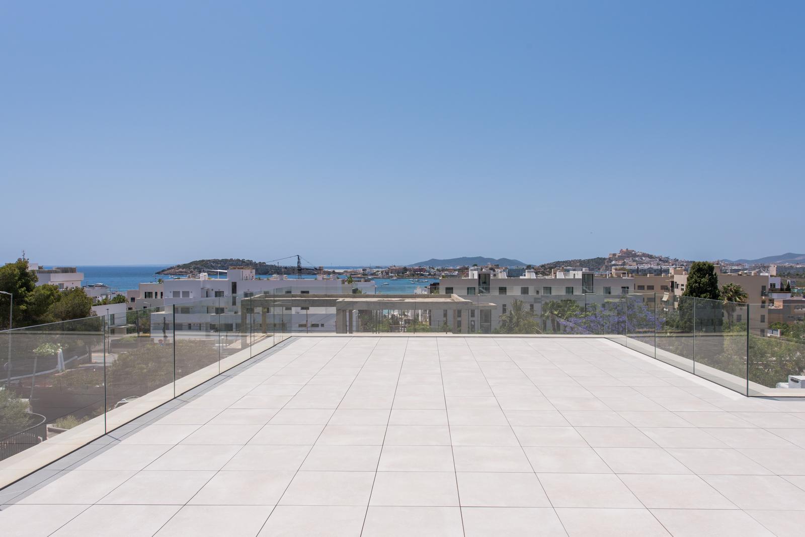 The villa also boasts a 150 m² rooftop terrace, a unique space ideal for creating an outdoor lounge and dining area beneath a pergola, with a barbecue corner—all while enjoying breathtaking views of Talamanca Bay and Ibiza’s old town.