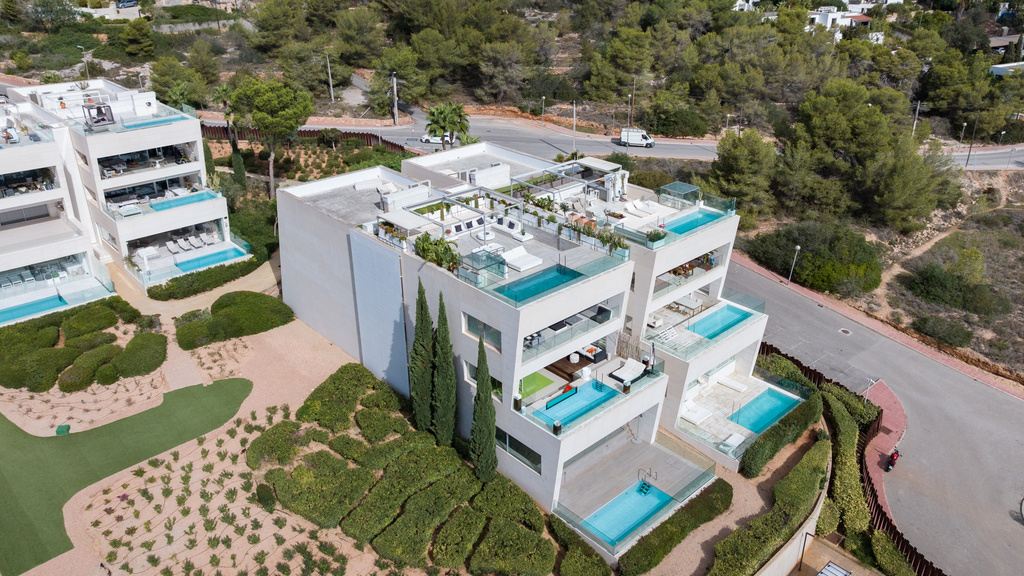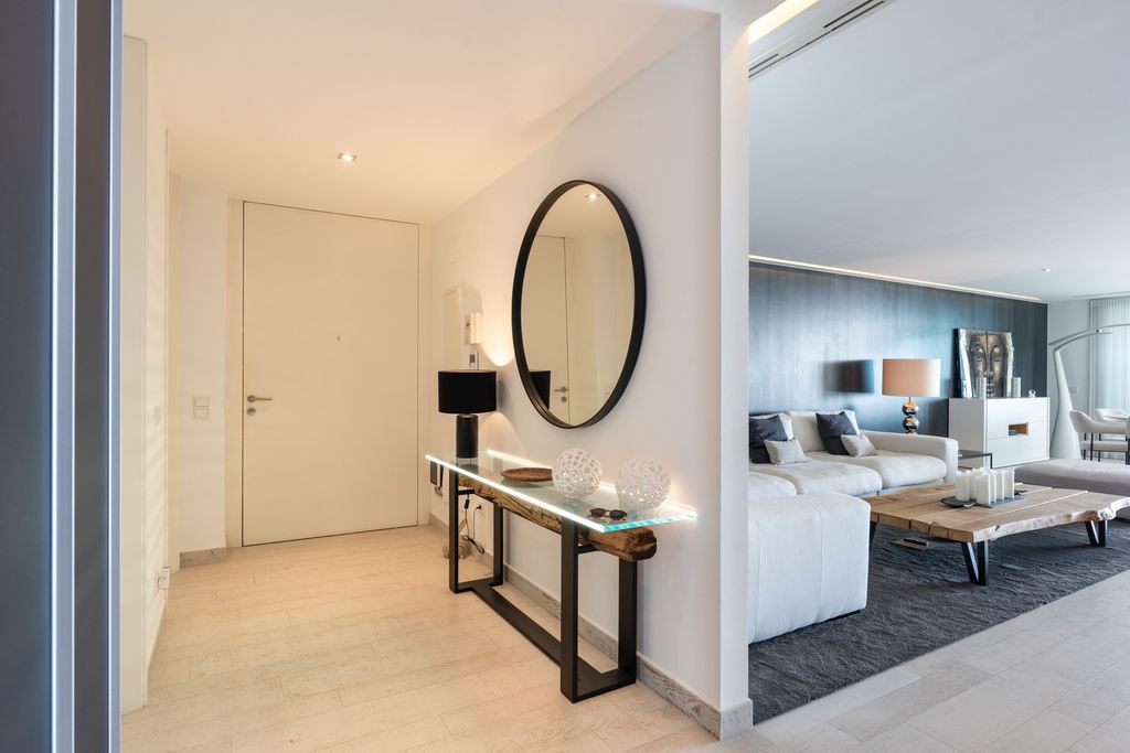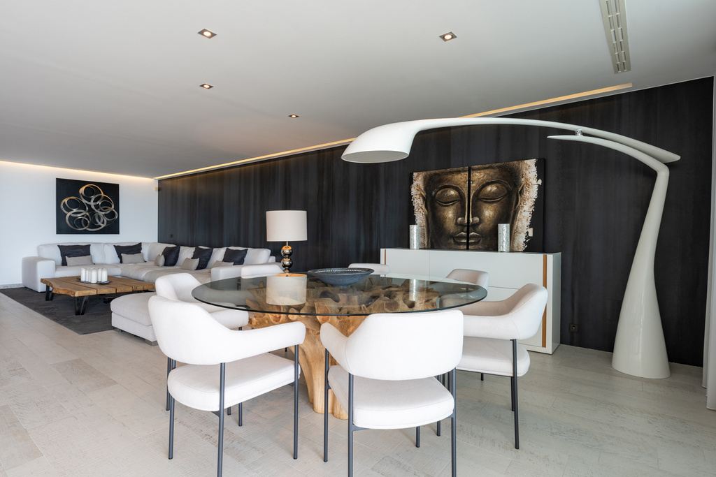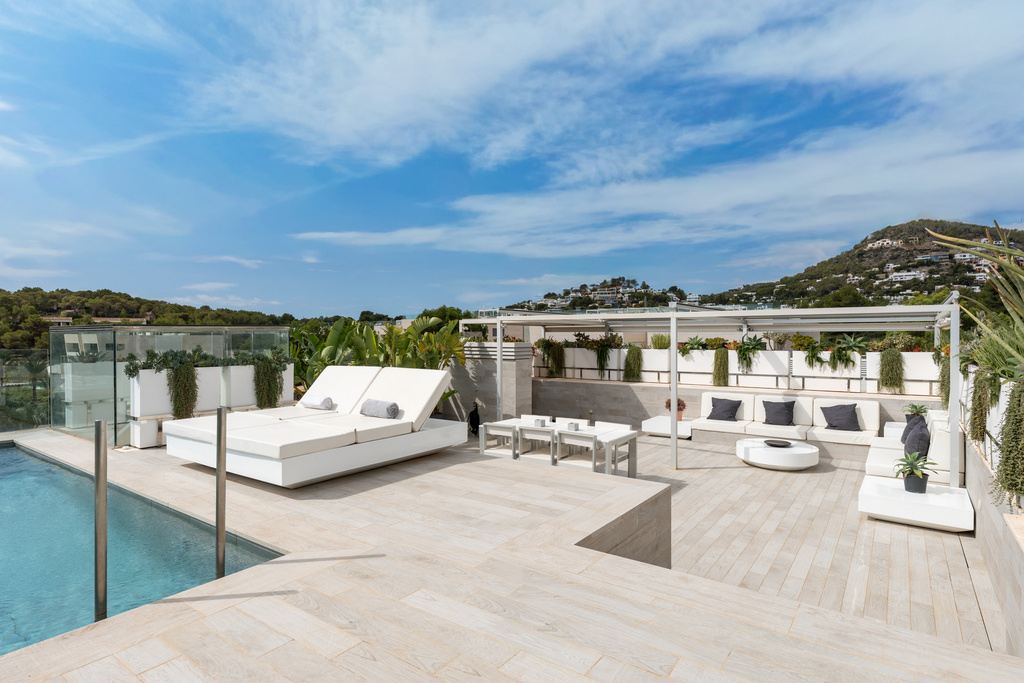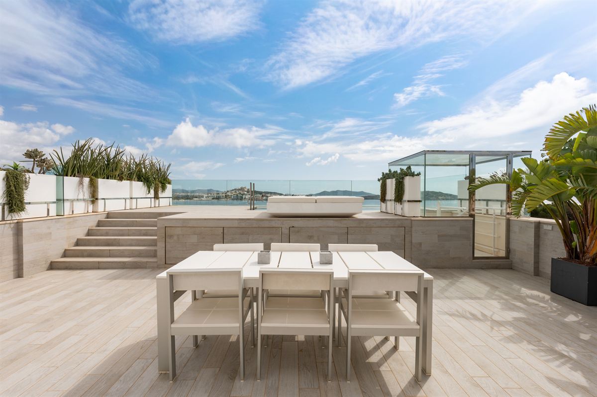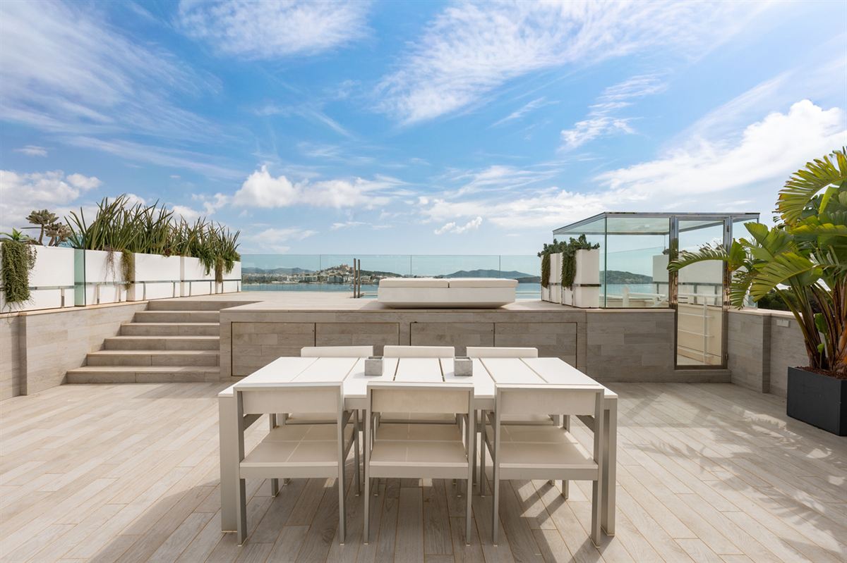 The outdoor areas elevate the penthouse experience, featuring multiple chill-out zones and a private pool that overlooks the sea and Ibiza’s old town. Residents of Es Pouet also enjoy 24-hour security, beautifully landscaped communal gardens, and a large infinity pool. This penthouse represents the epitome of modern luxury living in Talamanca — where style, comfort, and breathtaking views come together in harmony.
