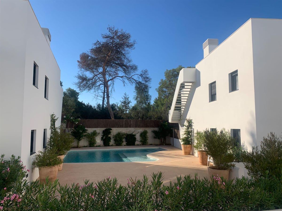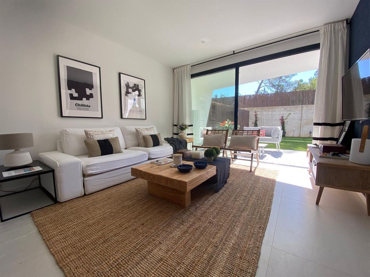 This stunning ground floor apartment presents a perfect blend of contemporary comfort and sophisticated design in one of Ibiza’s most desirable residential areas, Sant Antoni de Portmany. Situated within a modern and exclusive residential complex, the property is ideal for those seeking quality living in a peaceful yet well-connected setting.