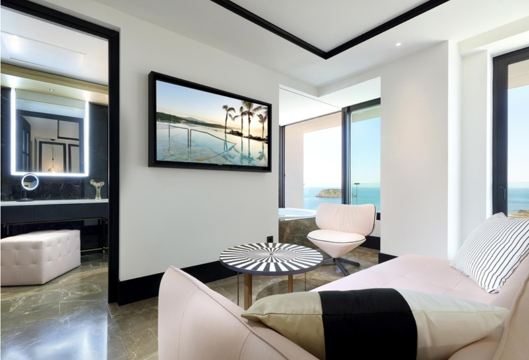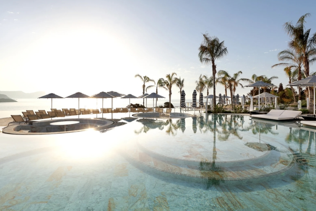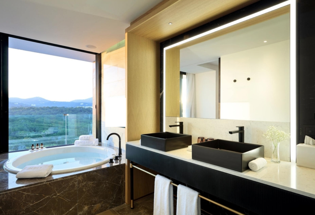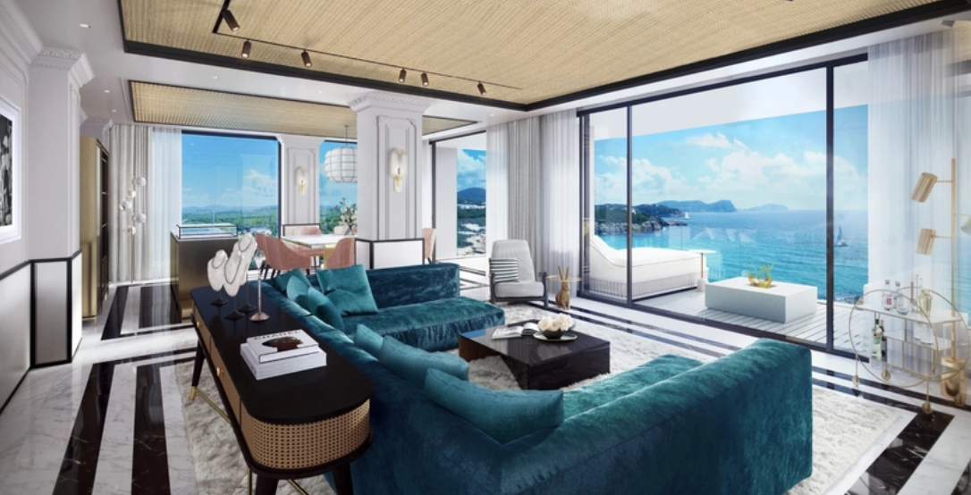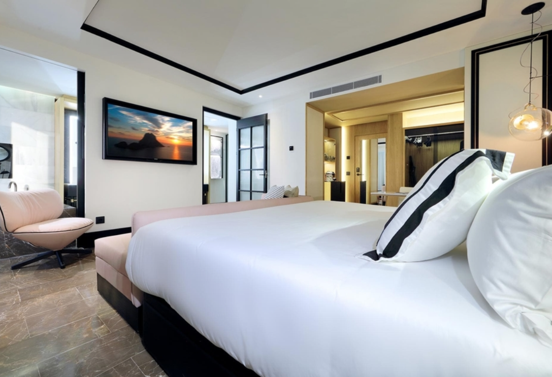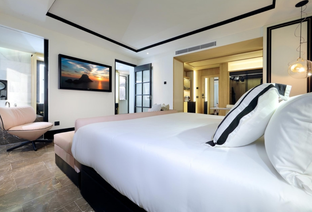 Completely refurbished in 2019, the hotel combines upscale hospitality with a prime location directly on one of Ibiza’s most beautiful beaches, offering easy access to water activities and coastal leisure.