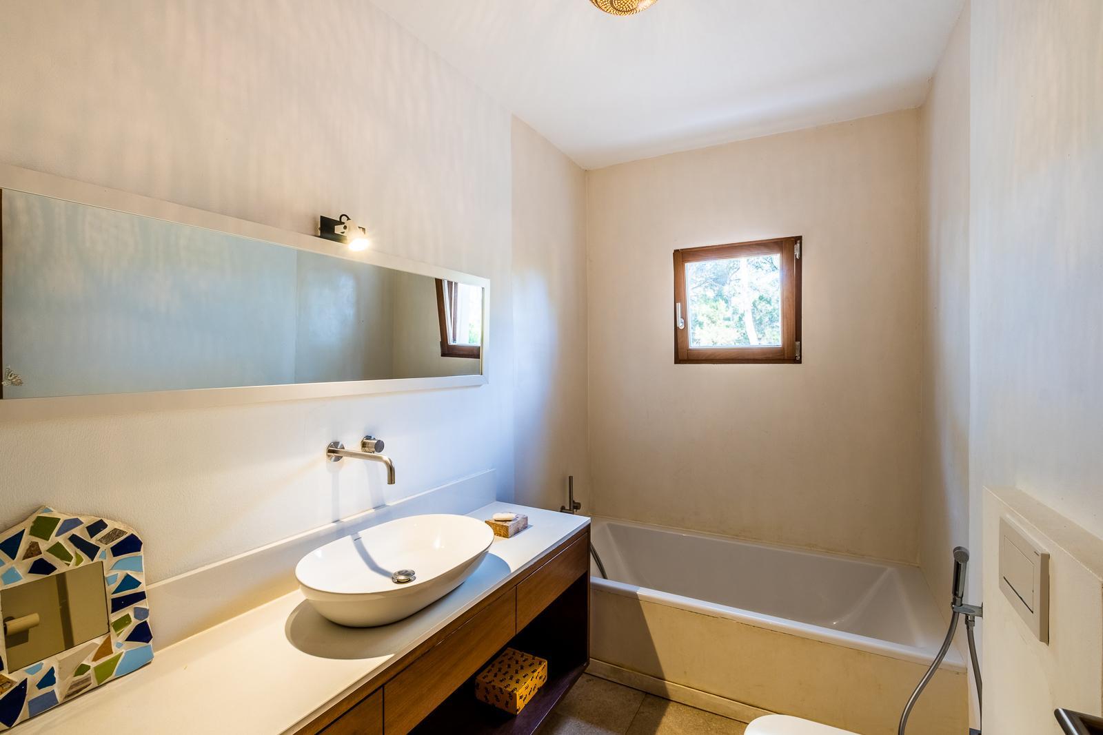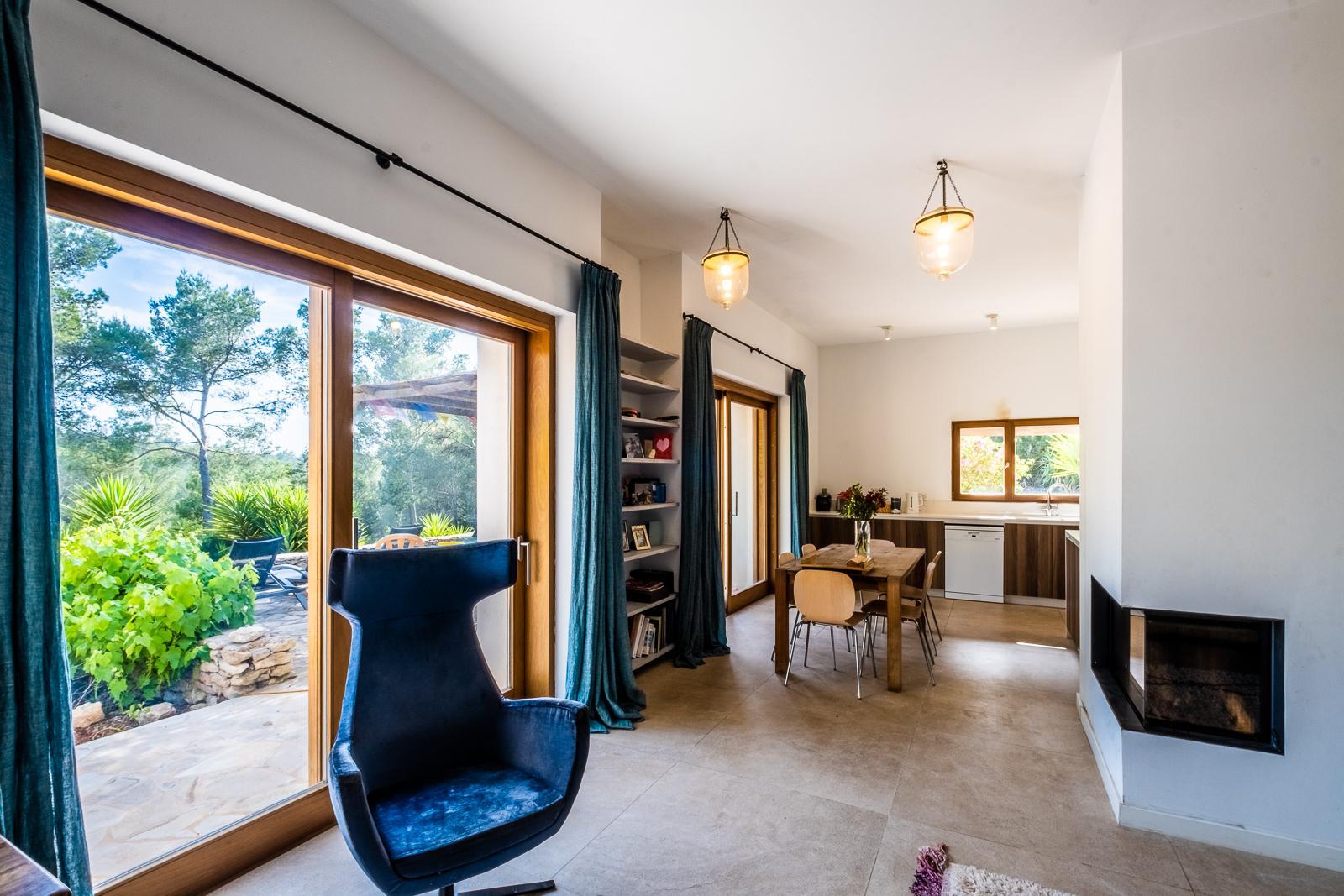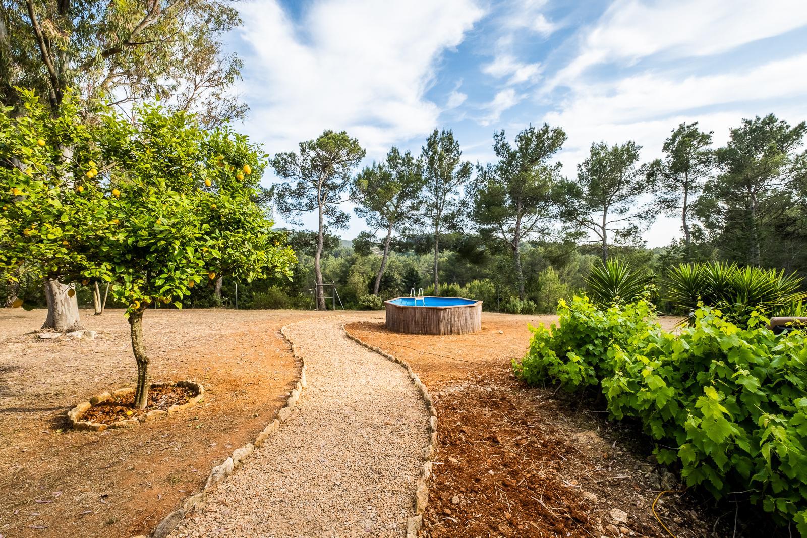 The outdoor areas are designed for relaxed Ibiza living, featuring an 11 x 4 metre swimming pool, landscaped gardens, and a charming traditional water wheel, adding character and a distinctive touch to the estate.