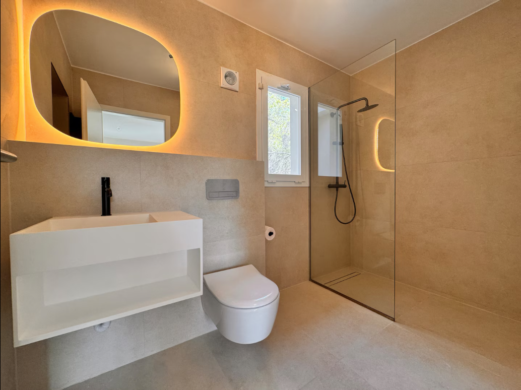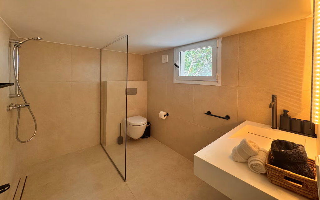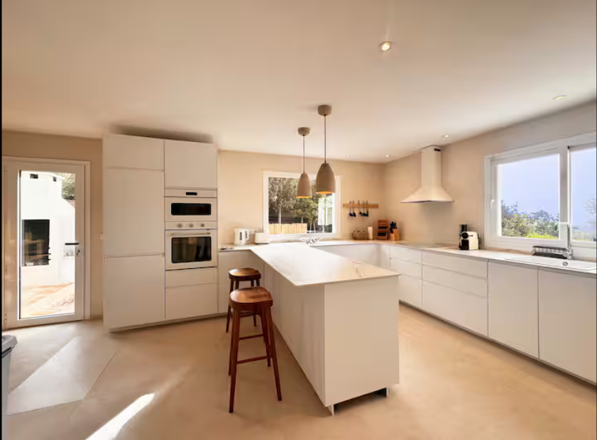 The property with a spacious living room, an elegant dining area and a fully equipped kitchen, which has a cooking island with induction hob and an additional gas stove with six burners. In total, the villa has four suites and 5 bathrooms. All rooms are equipped with air conditioning. It has two additional rooms you can use as bedrooms or cinema or